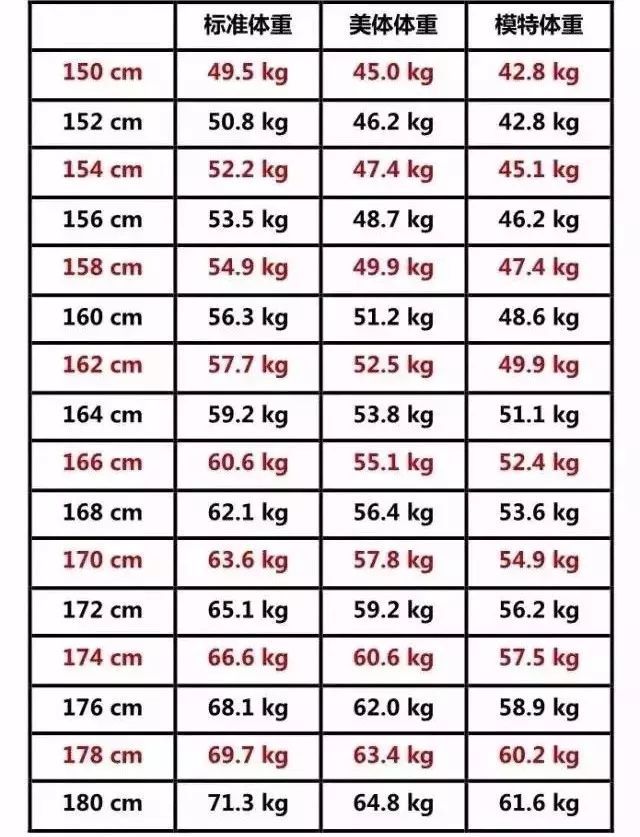 男女标准体重表 2025身高标准一览