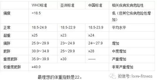 以下是各种不同的BMI标准