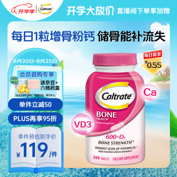 钙尔奇海外 高含量钙+维生素D3 碳酸钙片粉钙200粒 易吸收 骨骼补钙