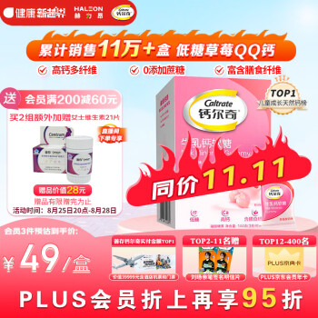 钙尔奇 牛乳钙软糖(草莓酸奶味) 48粒 乳钙高钙含膳食纤维低糖儿童补钙