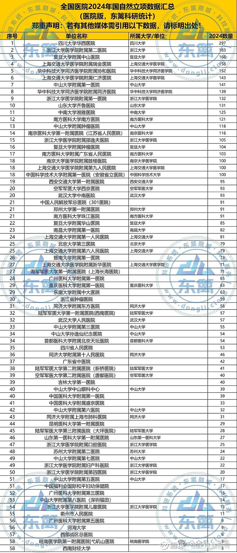将2024年的数据与2023年进行了对比,发现上升幅度最大的医院为以下几家,增加立项数都在20项以上,瑞金超越仁济,重回交附系榜首。